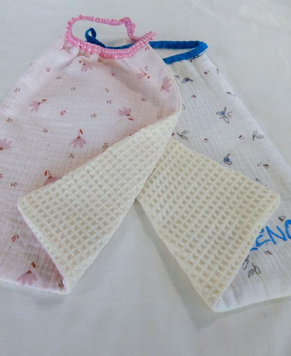 • Dessus en double gaze toute douce et dessous en nid d’abeille absorbant