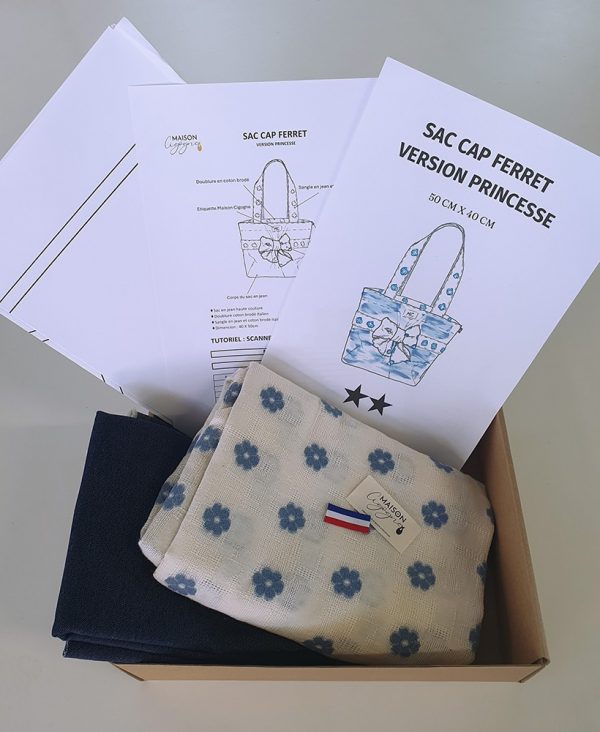 Libérez votre créativité avec notre box couture exclusive ! Cette box vous permet de réaliser votre propre sac cabas en jean orné d’un gros nœud, accessoire tendance ! Vous le confectionnerez à partir de denim de haute couture et de tissu italien brodé.