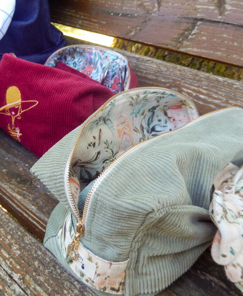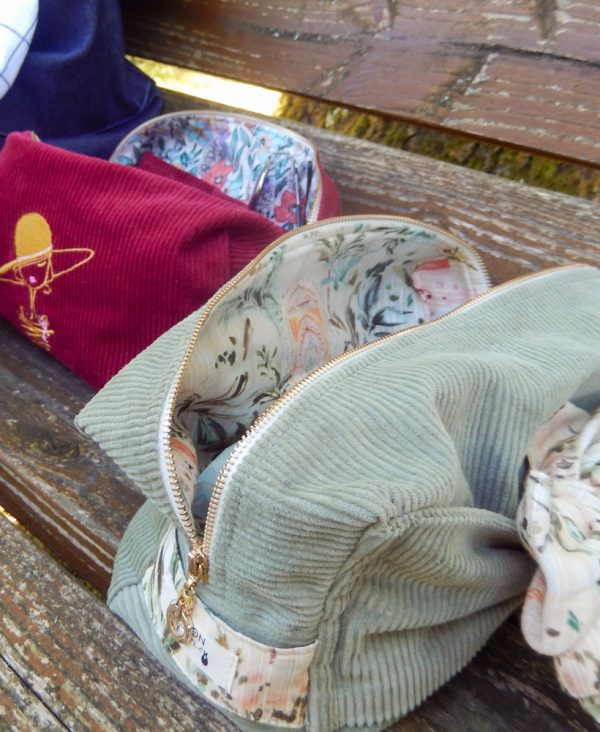 Cette box couture vous permet de réaliser une trousse de toilette, confectionnée en velours avec une broderie au choix et sublimée par un gros nœud.